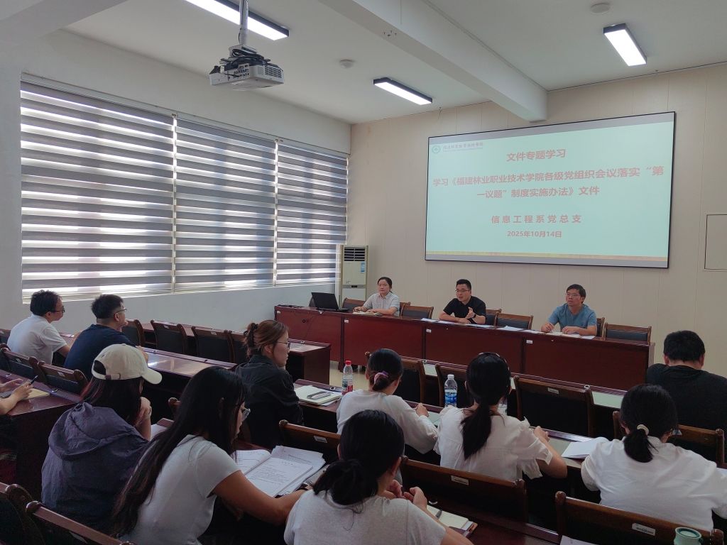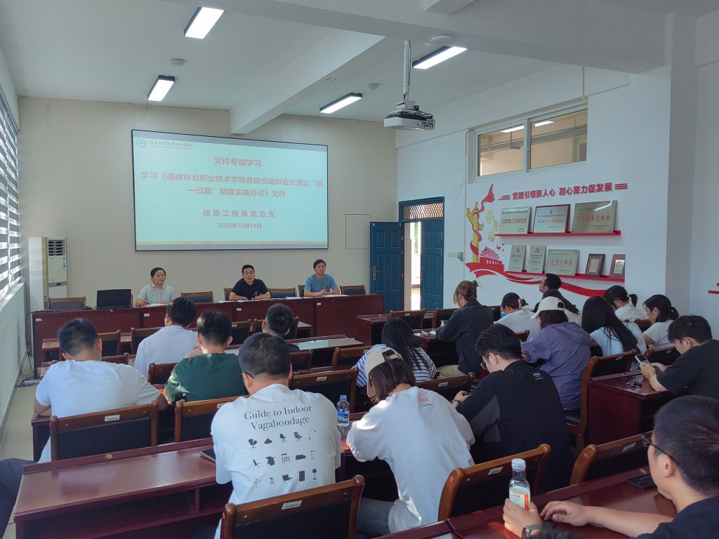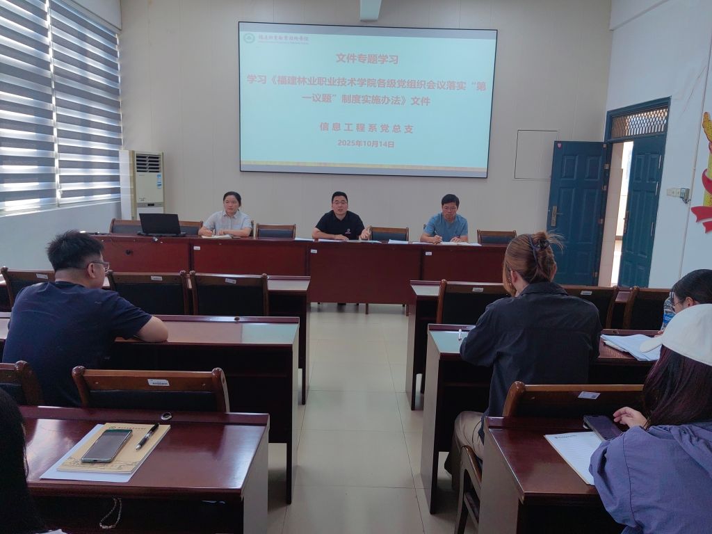 2025年10月14日下午,信息工程系党总支在信工楼408会议室组织召开专题学习会,深入学习《2024年新澳门原料免费各级党组织会议落实“第一议题”制度实施办法》。会议由系党总支书记、主任华建祥主持并领学,全体教工党员参加。