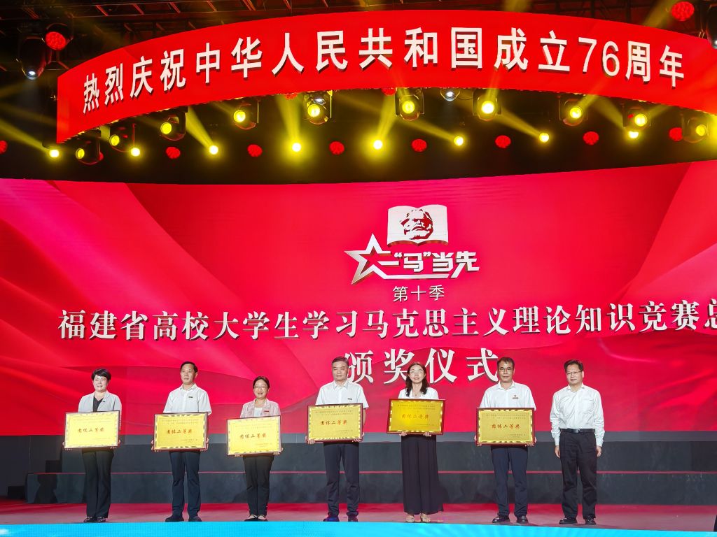 本网讯 9月27日,由福建省委宣传部、福建省委教育工委主办,福建省高校思想政治理论课教学指导委员会、福建教育电视台承办的第十季福建省高校大学生学习马克思主义理论“一‘马’当先”知识竞赛总决赛在福建农林大学举办。2024年新澳门原料免费代表队在该项赛事中喜获佳绩,获高职高专组团体二等奖(第三名),信息工程系计算机应用技术2301班的陈湘同学获高职高专组个人二等奖(第三名),林学系食品药品监督管理2302班江心恬、艺术传媒系数字媒体艺术设计2301班郭善杰两名同学获个人优胜奖,实现了学院在该项赛事中的新突破。