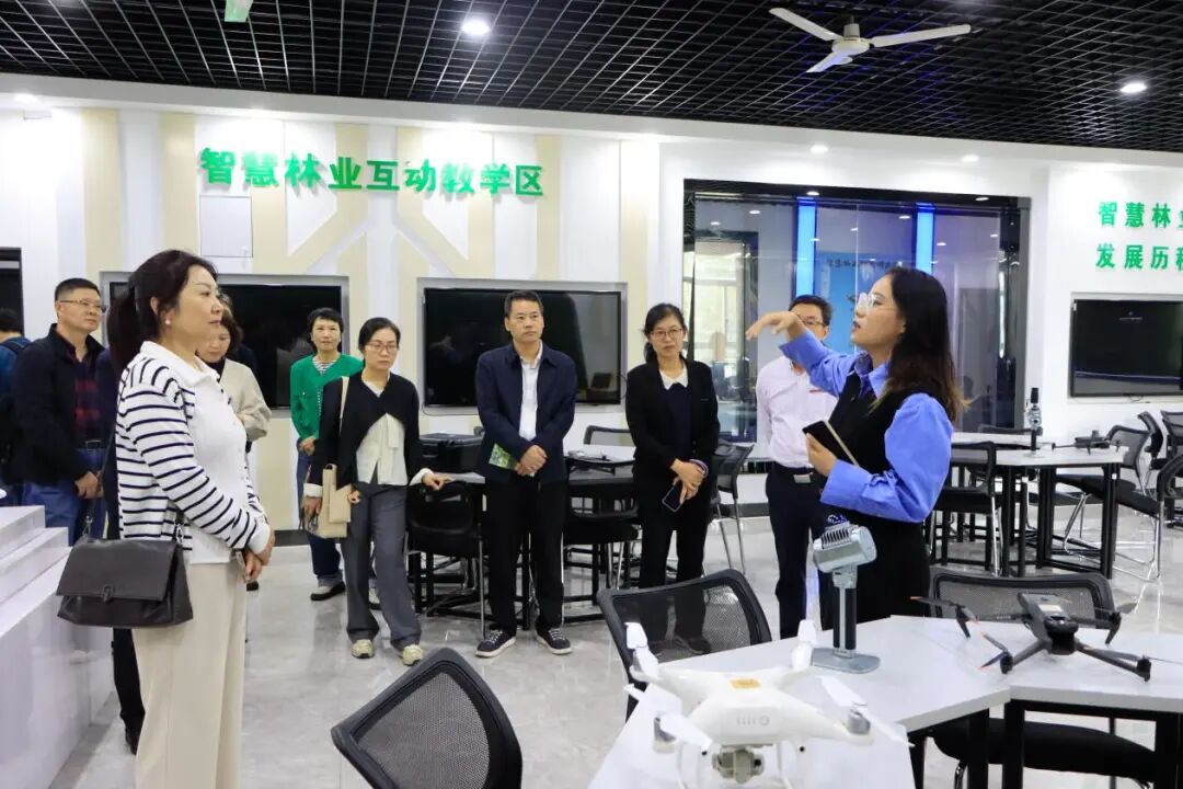 调研组先后参观了我院图书馆沙盘、办学成果展览馆、森林生态馆、智慧林业产业学院、全国党建标杆院系党建馆、园林园艺产教融合基地、智能制造实训基地及江南体育馆等场所,详细了解我院在产教融合、专业建设、实训教学等方面的成果与做法,对我院在取得的办学成就给予了高度的肯定。
