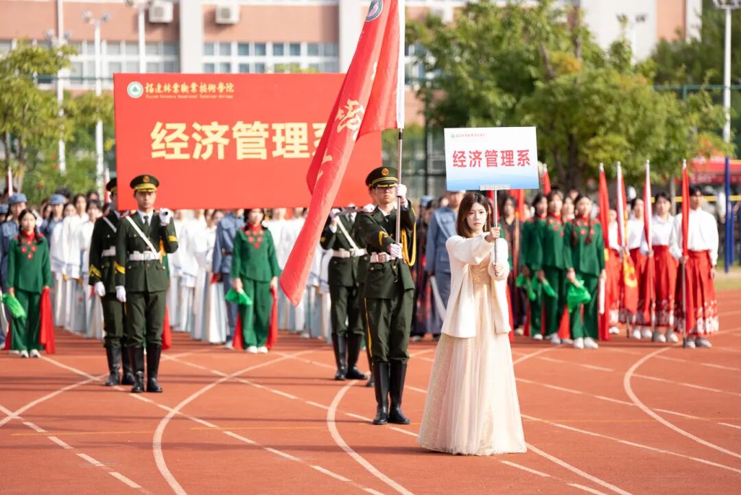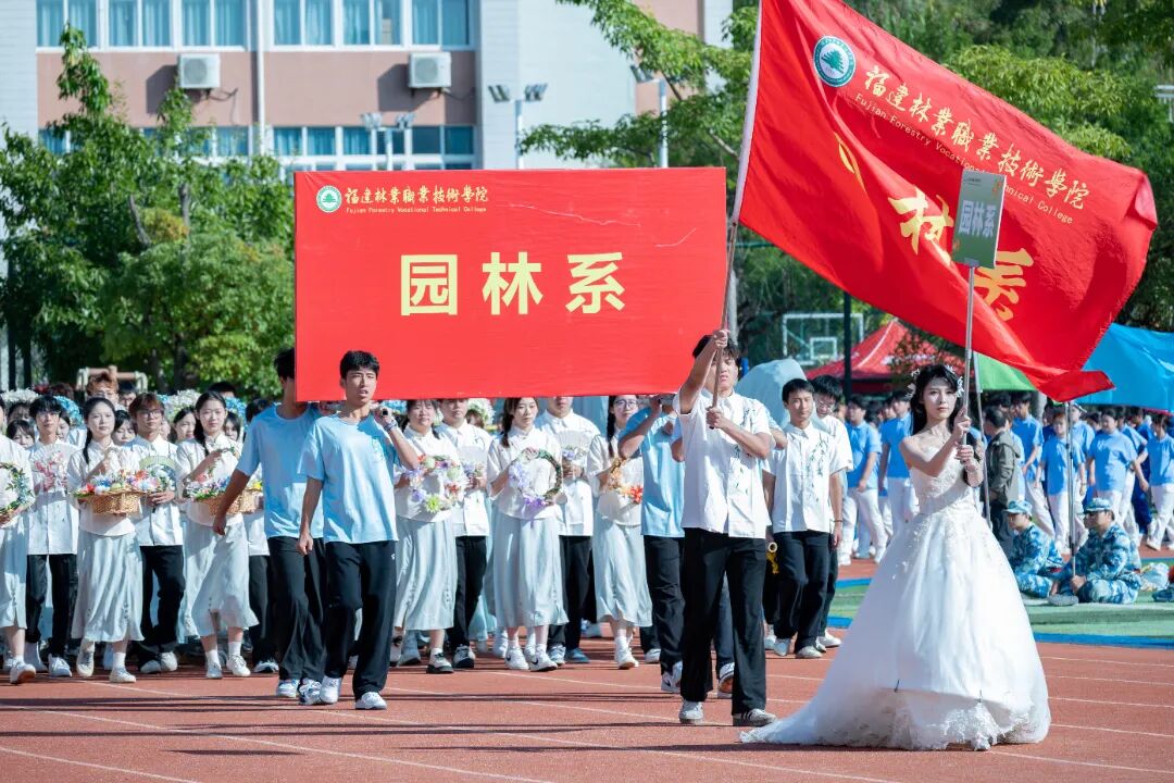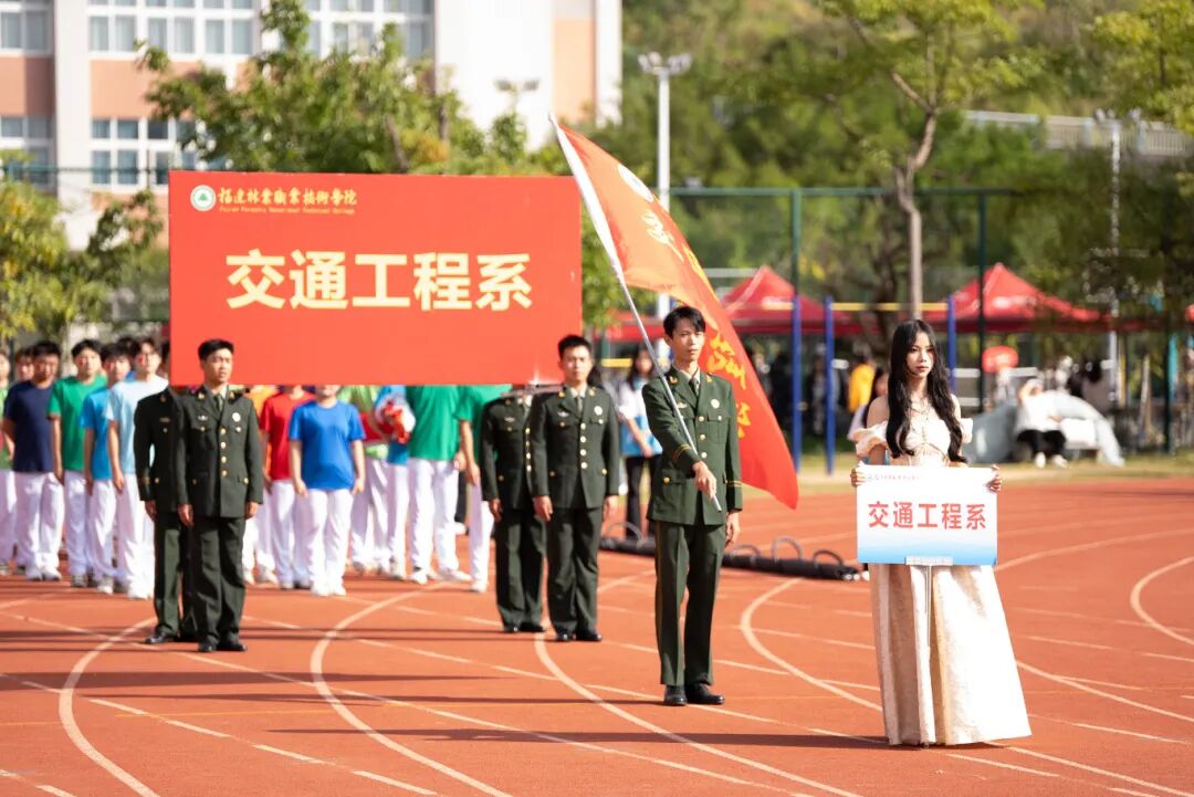 各系部学生代表方阵同样各具特色,意气风发。智能制造系方阵彰显科技力量;经济管理系方阵气势如虹;交通工程系方阵承载“交通强国”使命;园林系方阵作为“双高”建设专业群,实力雄厚;建筑工程系方阵融科技、信仰与拼搏精神于一体;信息工程系方阵用数据与代码描绘蓝图;林学系方阵以“林海逐梦”为主题,薪火相传;艺术传媒系方阵则誓言在赛场绽放别样风采。各方阵的精彩展示,全面展现了林职院师生团结进取、奋发向上的精神风貌。