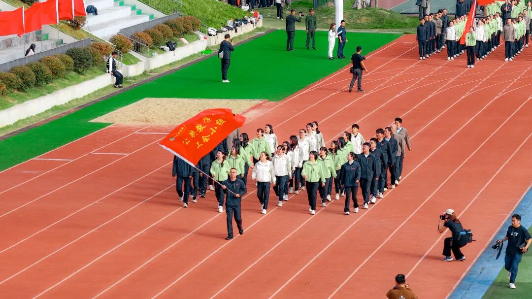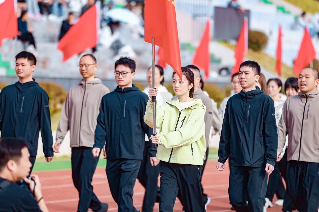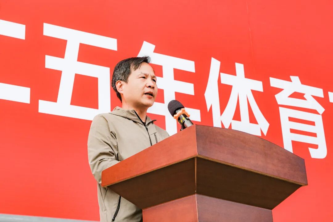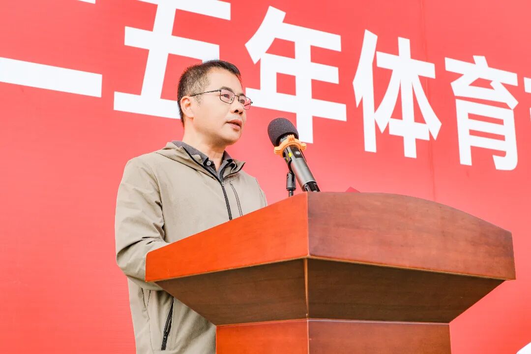 庄严的升国旗仪式后,学院党委书记陈建辉致开幕词。他首先代表学院对本届运动会的召开表示热烈祝贺,向全体运动员、裁判员和工作人员致以亲切问候和衷心感谢。陈书记回顾了2025年中国体育健儿在国际赛场上取得的辉煌成就,强调了拼搏进取、超越自我的体育精神对于个人成长和民族精神塑造的重要意义。他指出,校运会是对学院体育教学成果和师生身体素质的集中验收,更是展现师生精神风貌和综合素质的重要窗口。他希望全体运动员弘扬奥林匹克精神和中华体育精神,遵守规则,文明参赛,赛出水平、赛出风格;希望裁判员和工作人员恪尽职守,公正裁决,热情服务;希望观赛同学文明助阵,共同营造热烈和谐的竞赛氛围,力争运动成绩和精神文明双丰收。