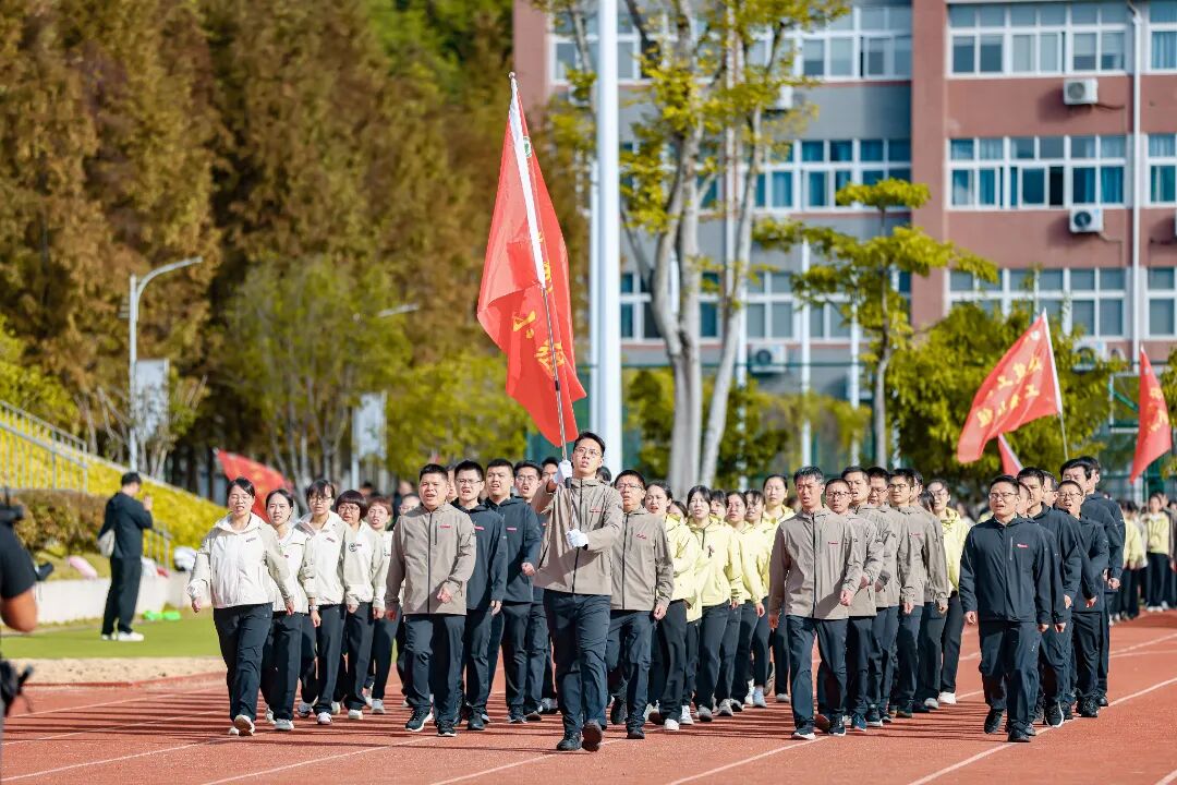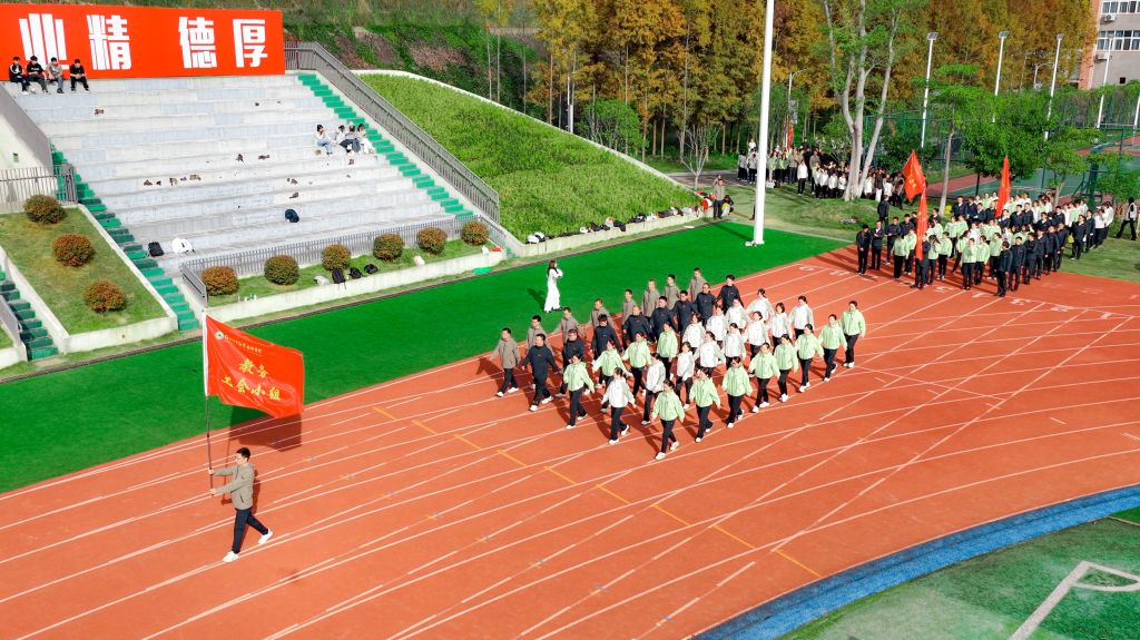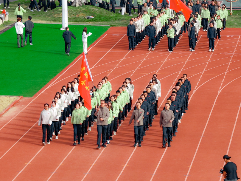 随后,各工会小组依次精彩亮相。艺术传媒系工会小组以创意为羽,以传媒为声,在运动场上挥洒激情与活力;教务工会小组在运动场上褪去案头的严谨,展现协作的活力与拼搏的激情;信息工程系工会小组以独特的“工”字队列方阵诠释工匠精神的时代内涵;政工工会小组用嘹亮的口号和坚定的步伐,宣告他们服务师生的坚定担当;智能制造系工会小组带着青春的活力、蓬勃的生机展示了全国党建工作标杆院系的风采;建筑工会小组携满格朝气,以昂扬之姿阔步向前,续写“精工至善、创新不止”的奋进篇章;经管继教工会小组精神饱满、步伐稳健,体现了终身教育引领者的风范;行政工会小组立足行政后勤管理工作,展现了保障学院高效运转的坚实力量;公共教学部工会小组作为“学科领航者”活力登场,用行动诠释初心与担当;林学系工会小组把教学科研中的严谨与拼搏精神融入运动赛场;园林系工会小组践行乡村振兴与生态文明使命,努力建设高水平团队;交通工程系工会小组以交通人的严谨与激情,点燃赛道激情,提速青春梦想。