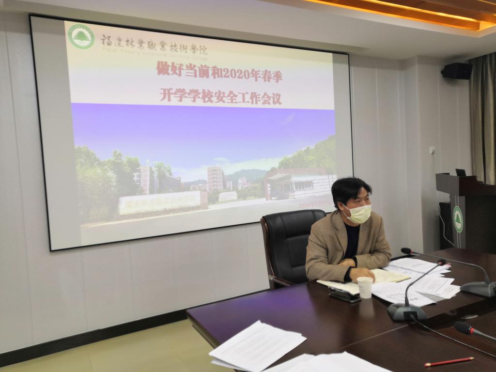 2020年3月17日下午,学院在江南校区办公楼五楼第一会议室召开当前和2020年春季开学安全工作专项会议。党委副书记严绍裕及学院安全保障工作有关部门负责人参加会议。会议由严绍裕副书记主持。