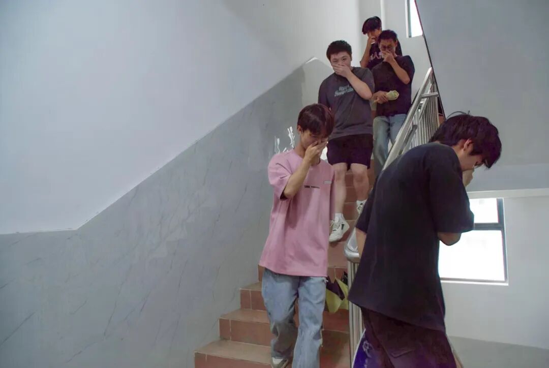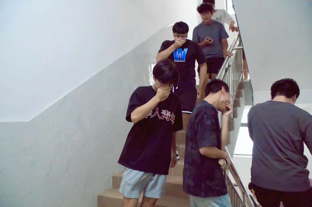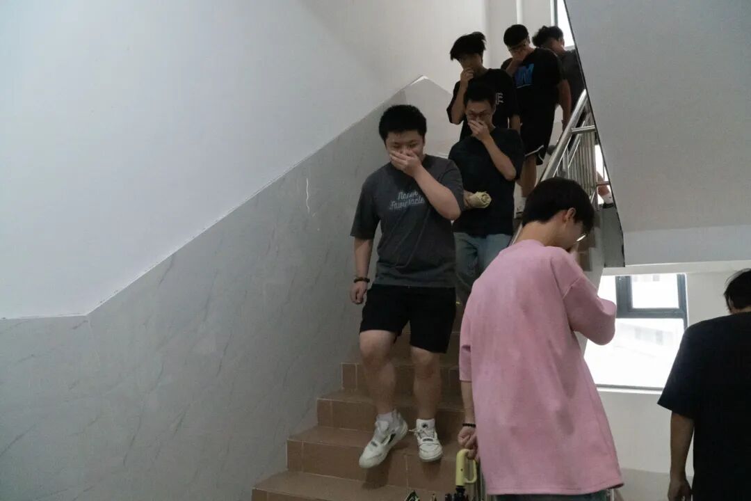 活动伊始,专业消防安全讲师结合校园火灾案例,围绕火灾成因、初期火情识别、火场逃生技巧、消防设施原理等核心知识进行细致讲解,用通俗易懂的语言帮助同学们掌握基础消防理论。讲解结束后,消防疏散演练正式启动。随着模拟火灾警报响起,同学们在工作人员的引导下,迅速弯腰,按照预设疏散路线有序撤离至指定安全区域,整个过程快速、规范,充分检验了同学们的应急反应能力。