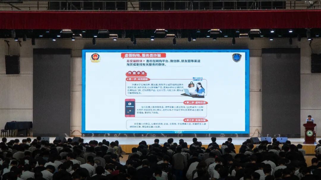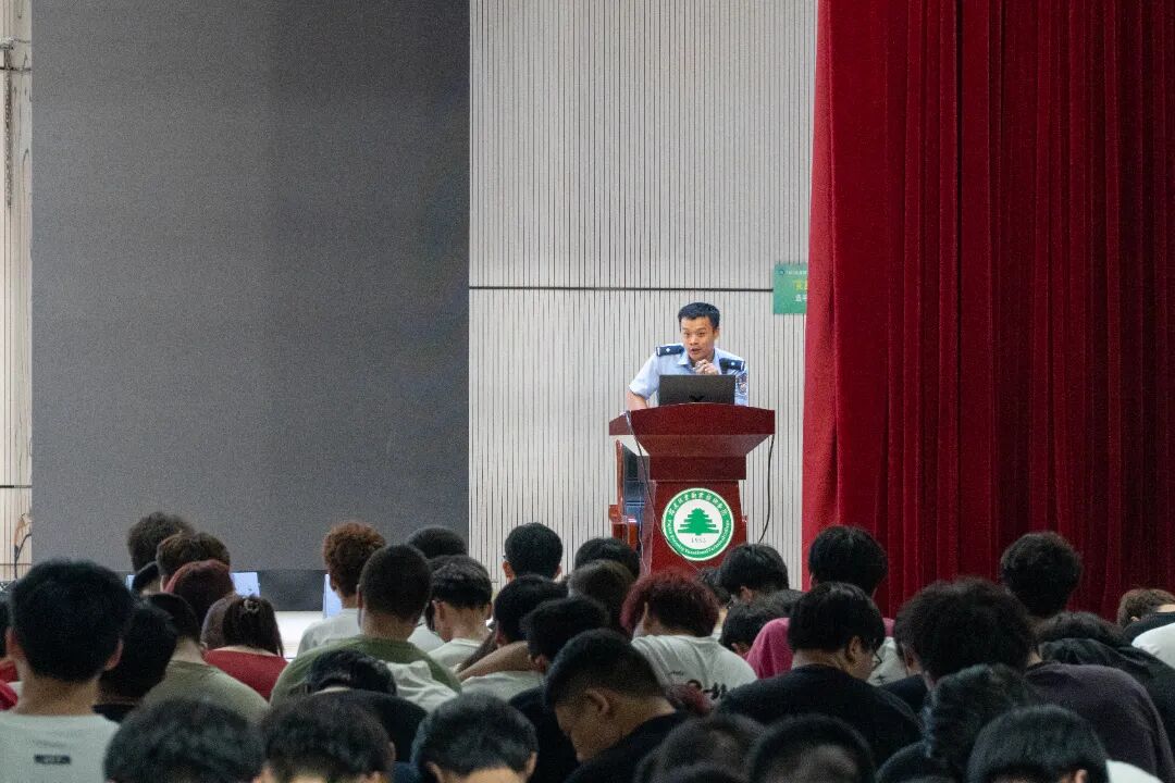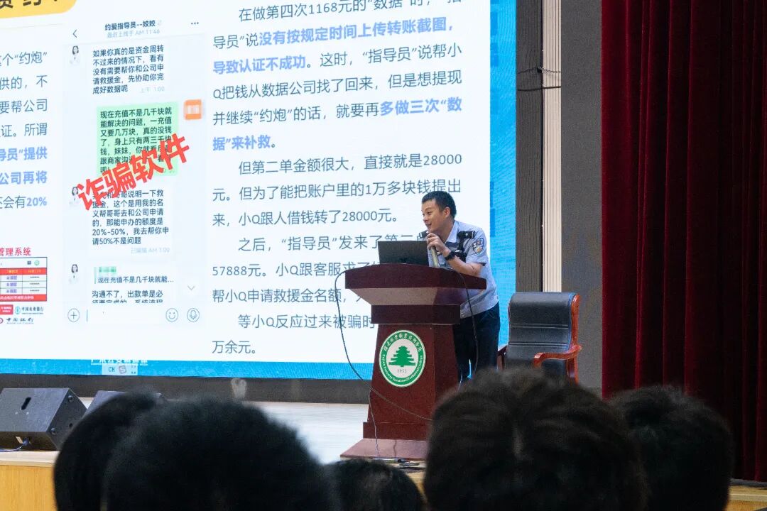 林泽宇警官结合高校常见安全隐患,用生动案例为新生敲响安全警钟。他通过剖析电信诈骗的典型套路,如“冒充客服”“网络刷单”“校园贷陷阱”等,提醒同学们“不轻信、不转账、不泄露个人信息”,并现场教授“国家反诈中心”APP的使用方法。针对实验室安全、宿舍用电规范等场景,林警官以图片和视频形式展示违规操作的严重后果,强调“安全无小事,防范靠大家”。互动环节中,新生踊跃提问,林警官逐一解答,现场气氛热烈。