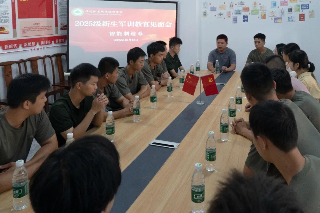 10月12日上午,智能制造系在一站式学生社区召开2025级新生辅导员与全体教官见面会。会议由系学生科长兼团总支书记张碧清主持,全体新生辅导员及军训教官及学生干部团队参会。