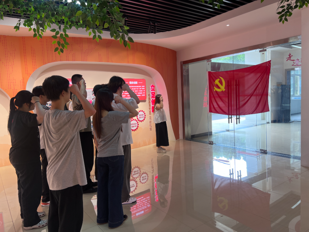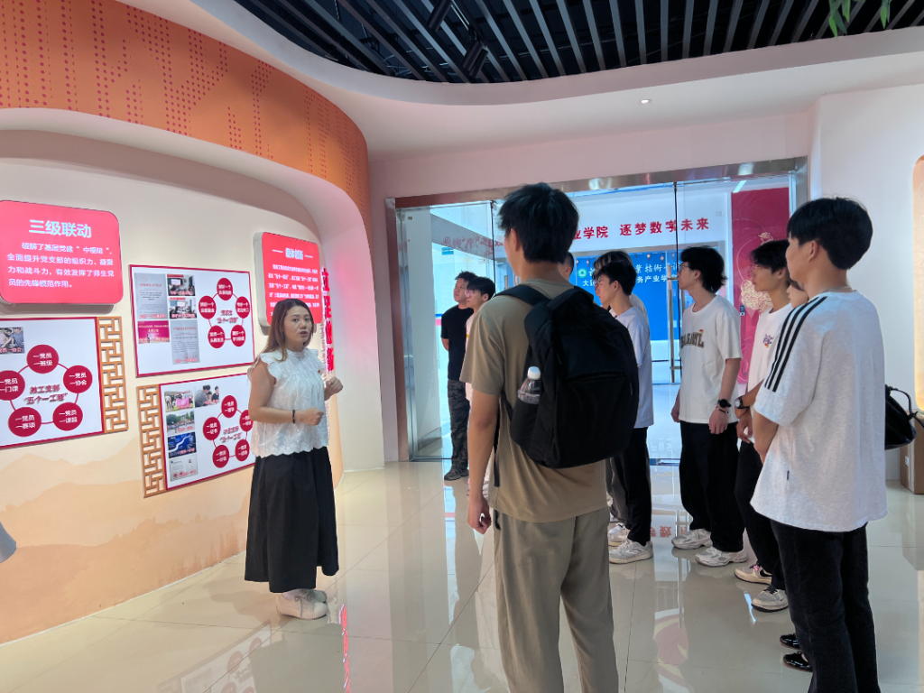 秦书记组织毕业生党员开展“对标标杆强党性,汲取力量再出发”主题党日活动,大家参观了全国党建标杆院系党建馆,深入了解标杆院系在党建机制创新、“三会一课”规范化建设、党建与专业融合等方面的先进经验,秦书记引导大家要立足岗位践行责任担当,在新征程中争当党建工作的践行者。